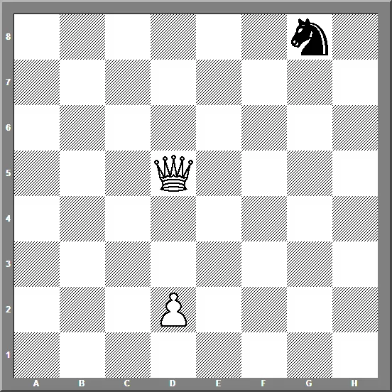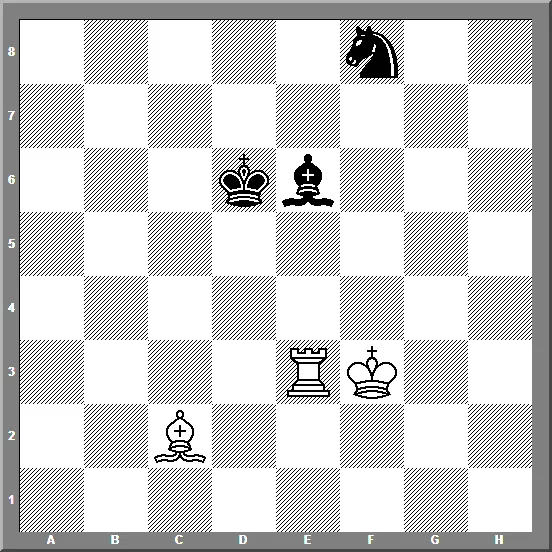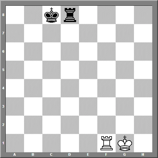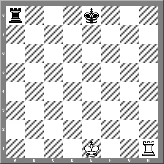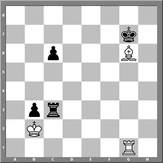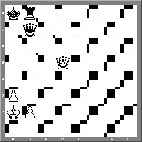 Trắng thực hiện nước chiếu liên tục và bên Đen chỉ có thể dùng quân Hậu hoặc Xe che chắn cho Vua. Ván cờ kết thúc hòa.