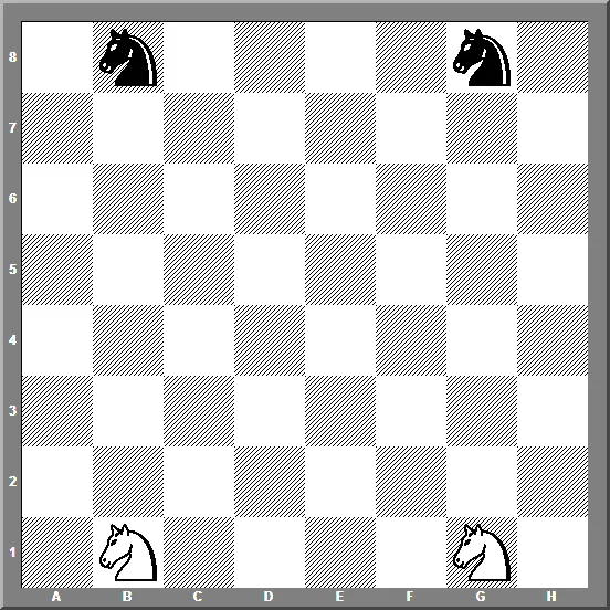 Hình: Vị trí ban đầu của quân Mã trên bàn cờ