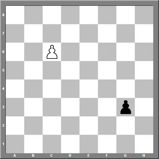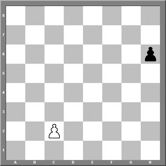 Quân Tốt Trắng có thể di chuyển đến bất kỳ ô cờ được đánh dấu tròn: ô c3 hoặc c4 (bên Trắng) và ô h5 (bên Đen).