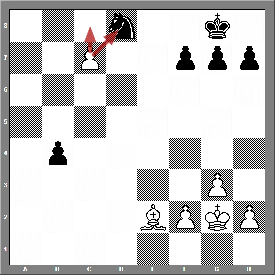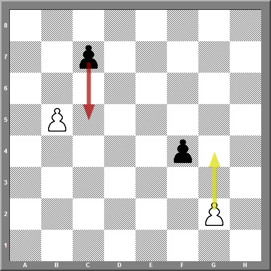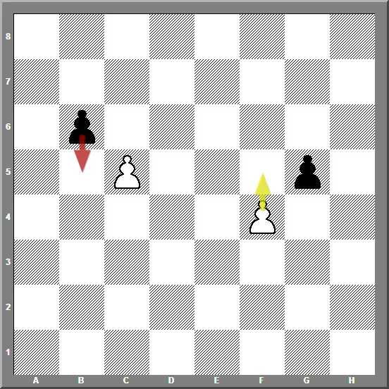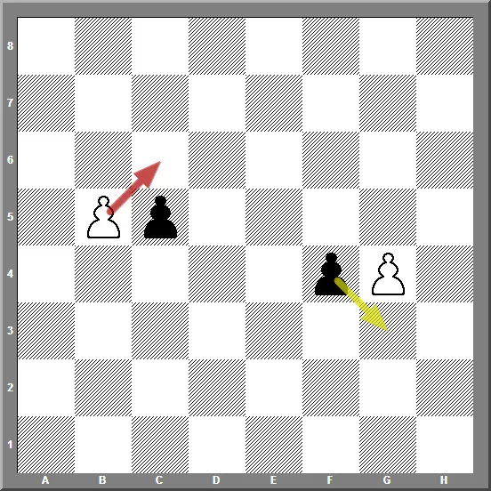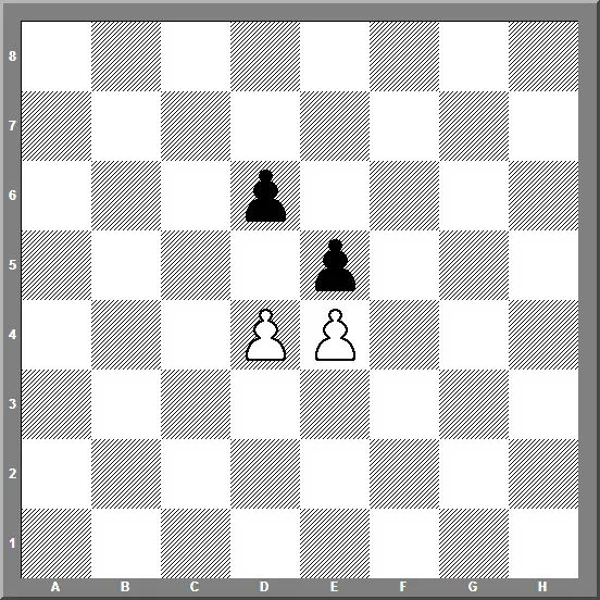 – Ở hình… Tốt Trắng e4 không có nước đi hợp lệ (bị chặn bởi quân Tốt e5), Tốt d4 có thể tiến đến phía trước bằng cách chơi: d5 hoặc bắt quân Tốt đen ở d5: dxe5