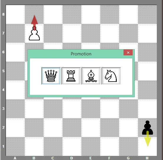 - cxd8/H+ # (bắt quân và phong cấp Tốt thành Hậu)