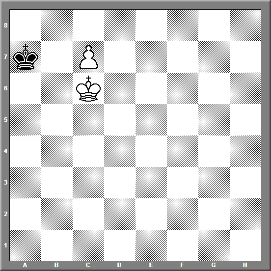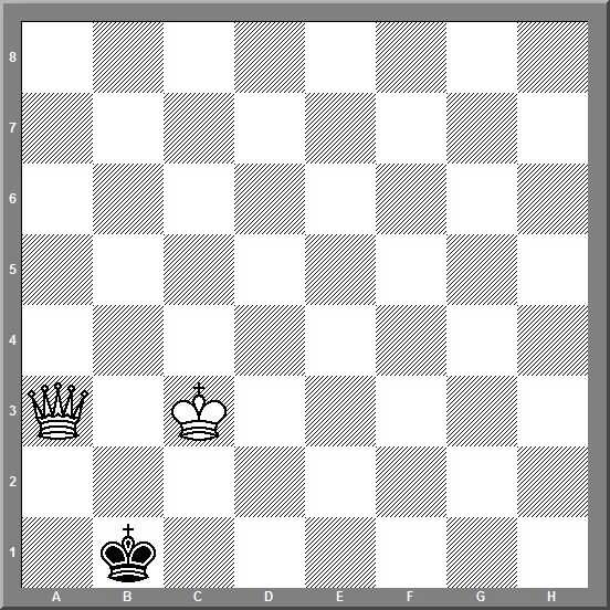 Vua Đen không còn nước đi hợp lệ: không thể di chuyển Vua đến những ô a1, a2, b2, c2, c1 vì bị Hậu và Vua Trắng đang kiểm soát. Ngoài ra, Vua Đen không bị chiếu bởi quân Hậu Trắng nên kết quả là hòa cờ (Pat).