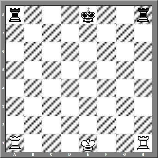 - Ô cờ khi Xe đồng thời di chuyển qua không bị kiểm soát bởi quân của đối phương (d1, f1, d8, f8).