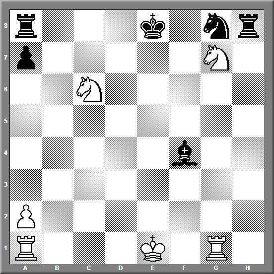 1.♕a5+ ♕a7 2.♕d5+ ♖b7 3.♕d8+ ♕b8 4.♕a5+ ♖a7 5.♕d5+ ♕b7 6.♕d8+ ♕b8 7.♕d5+ ♖b7 8.♕a5+ ½ – ½