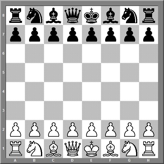 Hình: Vị trí ban đầu của quân Vua trên bàn cờ