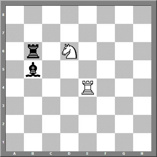 + Quân Vua Trắng không thể tiêu diệt quân đối phương đang được sự bảo vệ: ¢b3 (vì quân Tốt đen đang được sự bảo vệ bởi quân Xe đen);