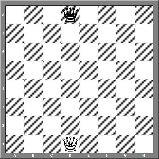 Hình: Vị trí ban đầu của quân Hậu trên bàn cờ